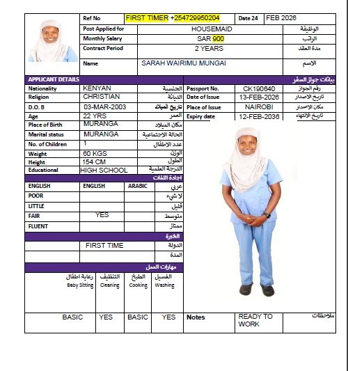 SARAH WAIRIMU MUNGAI